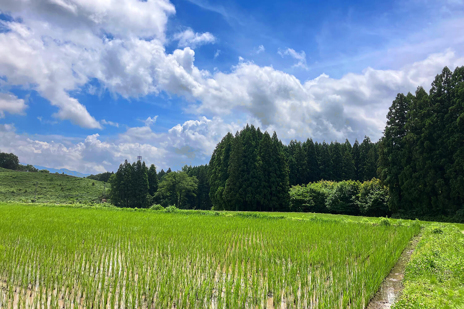 田んぼがある場所は標高が80mほどあり、お米が実る頃の日中と朝晩の気温差が大きいことで、食味の良いお米となる。